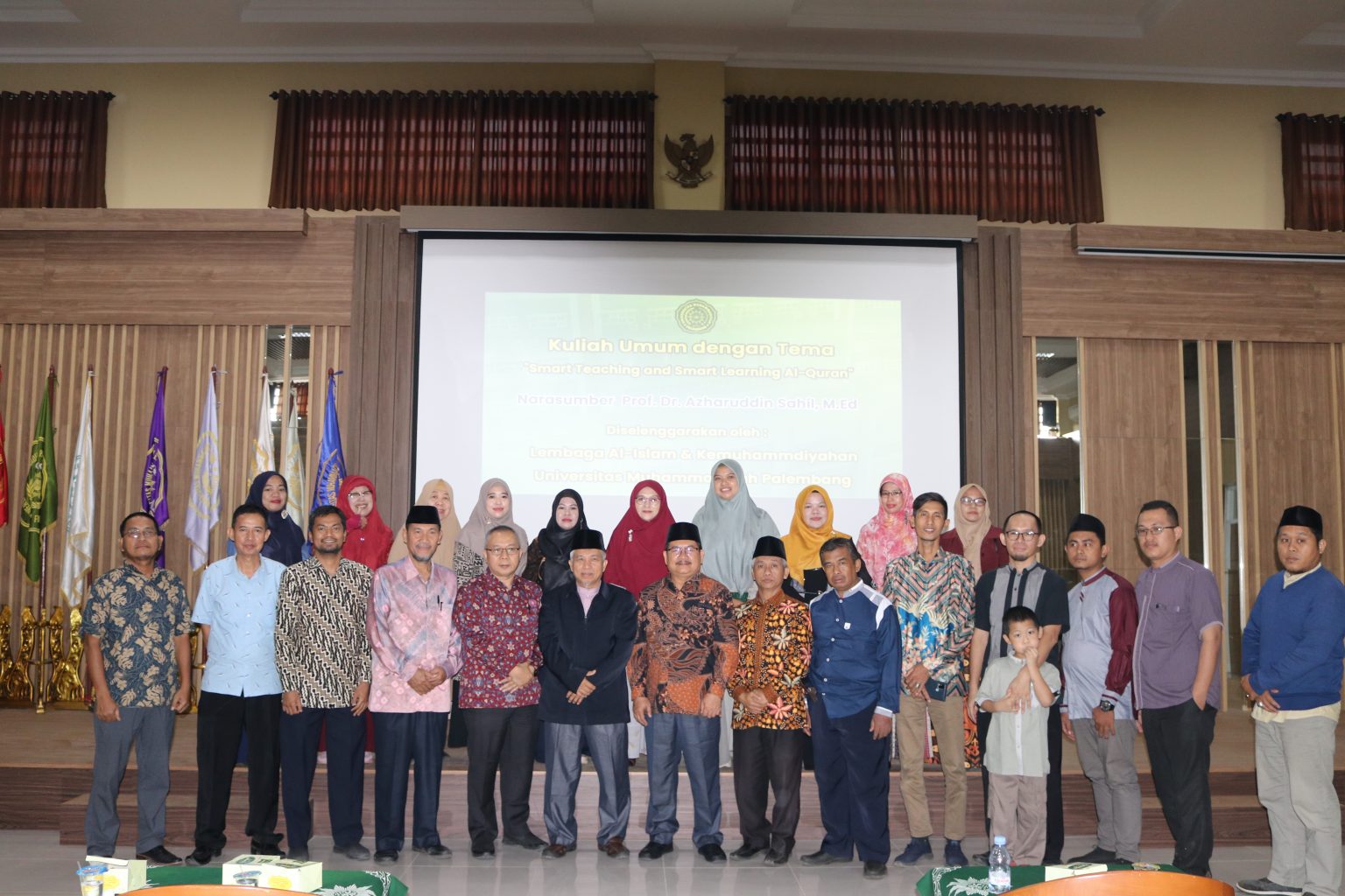um-palembang.ac.id – Lembaga Al-Islam dan Kemuhammadiyahan (AIK) Universitas Muhammadiyah Palembang menggelar kuliah umum yang bertema “Smart Teaching and Smart Learning Al-Quran” dengan menghadirkan narasumber Prof. Dr. Azharuddin Sahil, M.Ed., Guru Besar Universiti Utara Malaysia, pada Sabtu (6/5/2023).